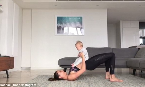 Cựu hoa hậu hoàn vũ ôm con tập thể dục